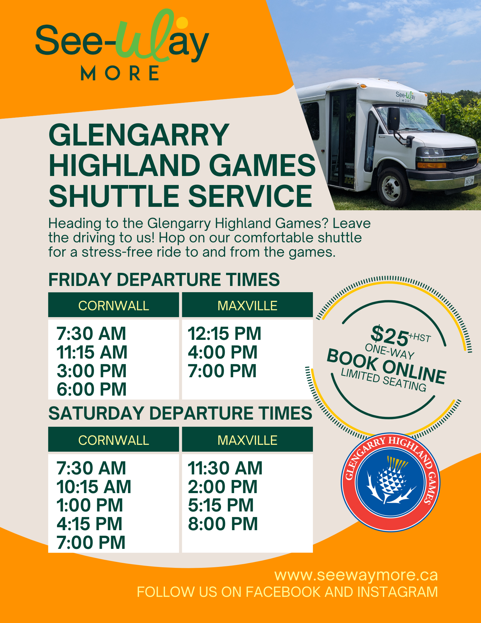 See-Way More is offering round-trip shuttle service between Cornwall and Maxville—perfect for a day at the Games without worrying about the drive.